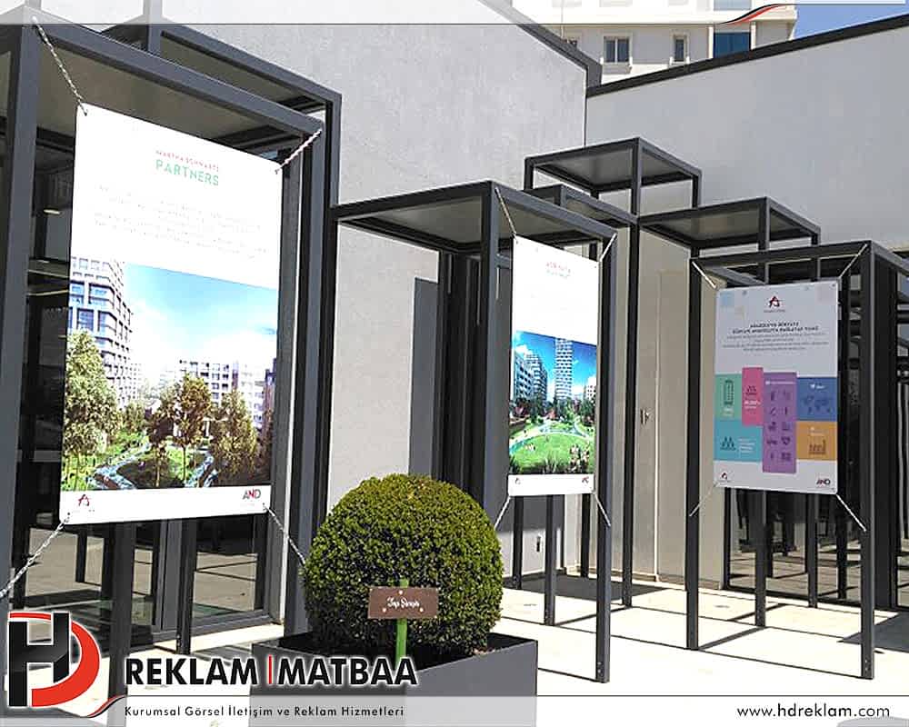 Marka tanıtımı, bilgilendirme, ürün tanıtımı, firma tanıtımı vb. reklamlarda kullanılan bir materyaldir. Standart bir ölçü olmamasına karşın genelde 35×50, 40×60, 50×70, 70×100, 100×150 gibi ölçüler daha çok tercih edilendir.